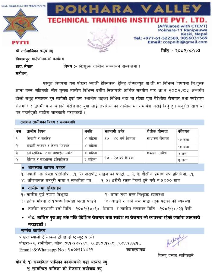 निःशुल्क तालिम सञ्चालन सम्बन्धमा ।